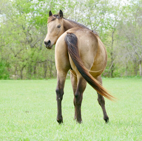 HollywoodPlaysMyCDs boasts an easy-going and willing personality, great conformation, and strong athletic ability - all traits that his foals seem to inherit! He is 5 Panel N/N and produces future reining, roping, and reined cowhorse prospects who are just as beautiful as they are athletic!